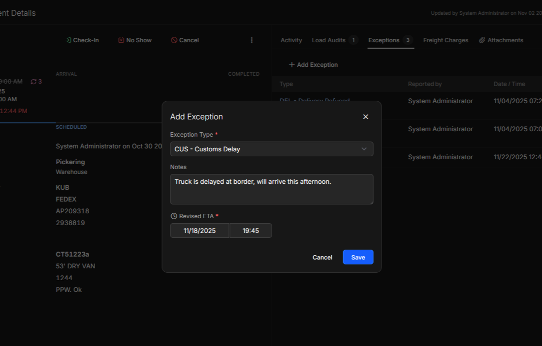 We’ve added a quick way for carriers and teams to flag appointment exceptions and share a revised ETA's'. Enodia now surfaces at-risk appointments in one clear view, so it’s easier to coordinate, adjust plans, and stay ahead of delays.